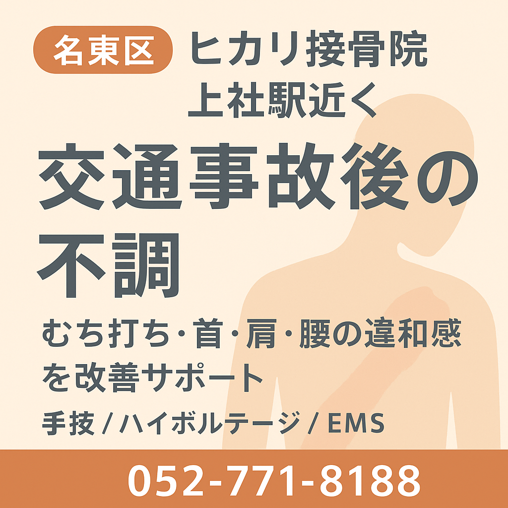 名東区・上社駅近くで交通事故による不調にお困りの方は、