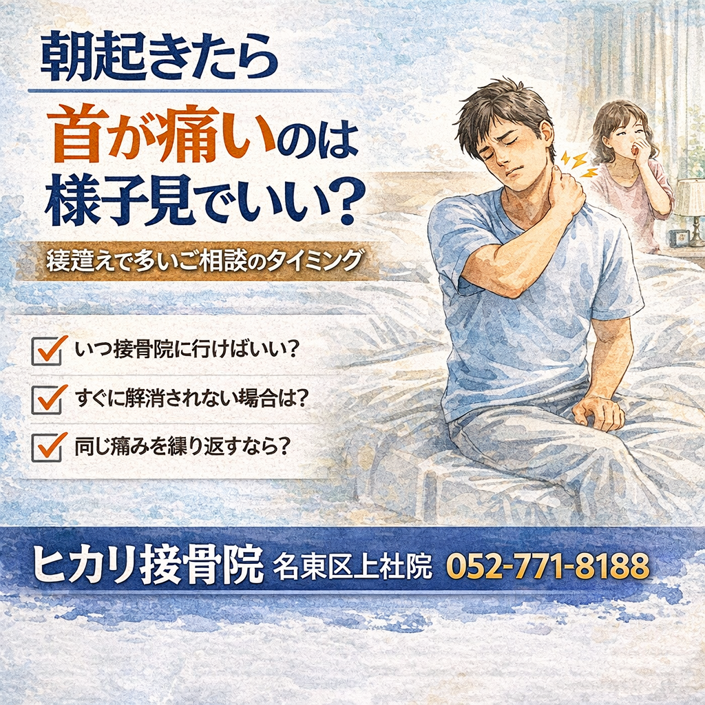 朝起きたときに首が痛く動かしづらいことがあります。寝違えのような状態で、様子見でいいのか相談した方がいいのか迷う方もいます。まず今の状態を整理することが判断の目安になります。