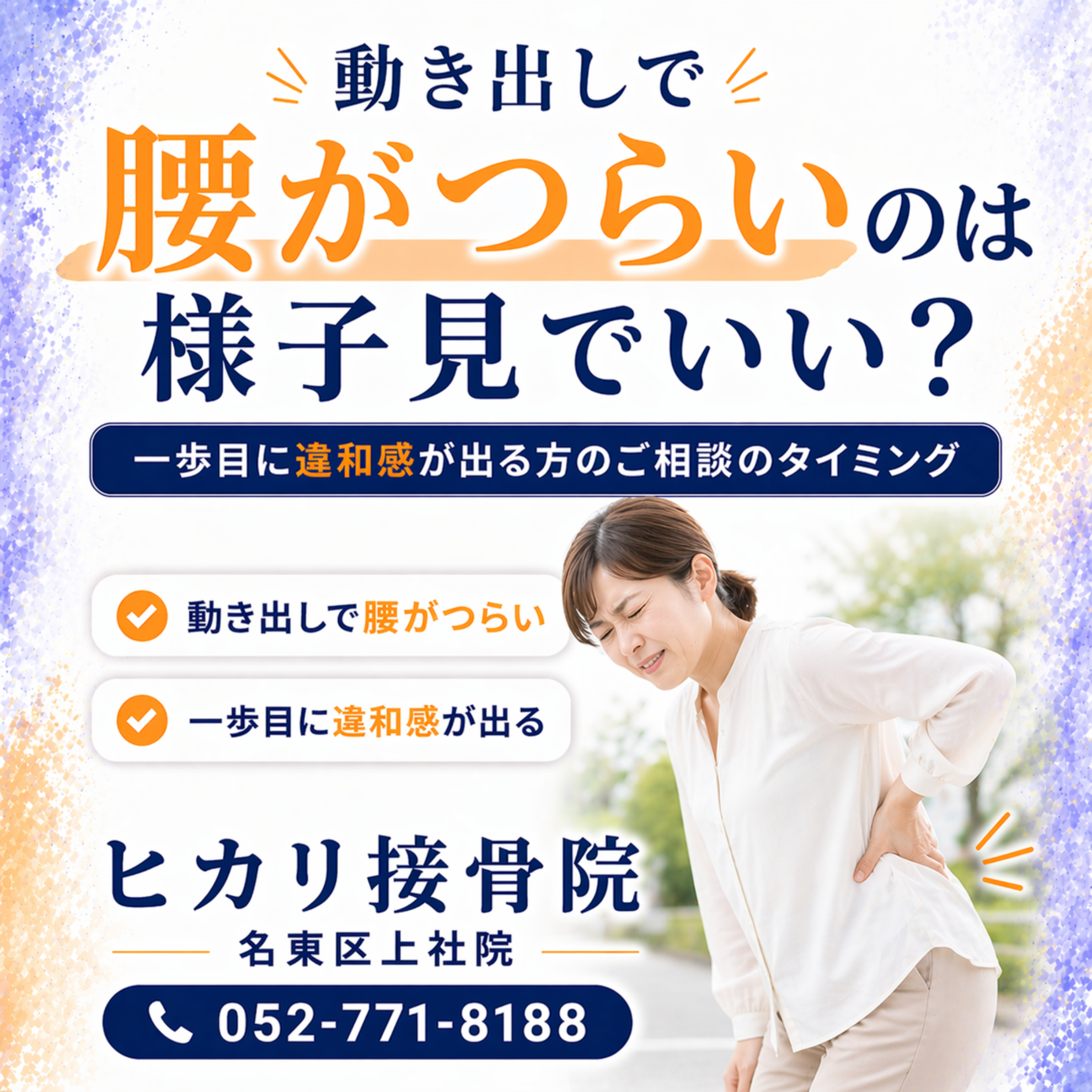 長時間座っていると腰が痛い、同じ姿勢が続くとつらい。このまま様子を見ていいのか迷う方も多いです。名東区でも多いご相談として、座り続けることで起こりやすい負担と判断の目安を整理します。