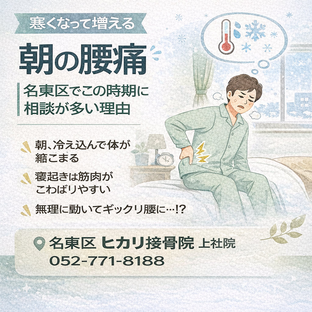 寒くなると朝だけ腰が痛い・重だるいと感じる方は少なくありません。名東区・上社駅周辺でもこの時期に多い朝の腰痛について、起こりやすい理由や相談の考え方を一般的な視点で解説します。