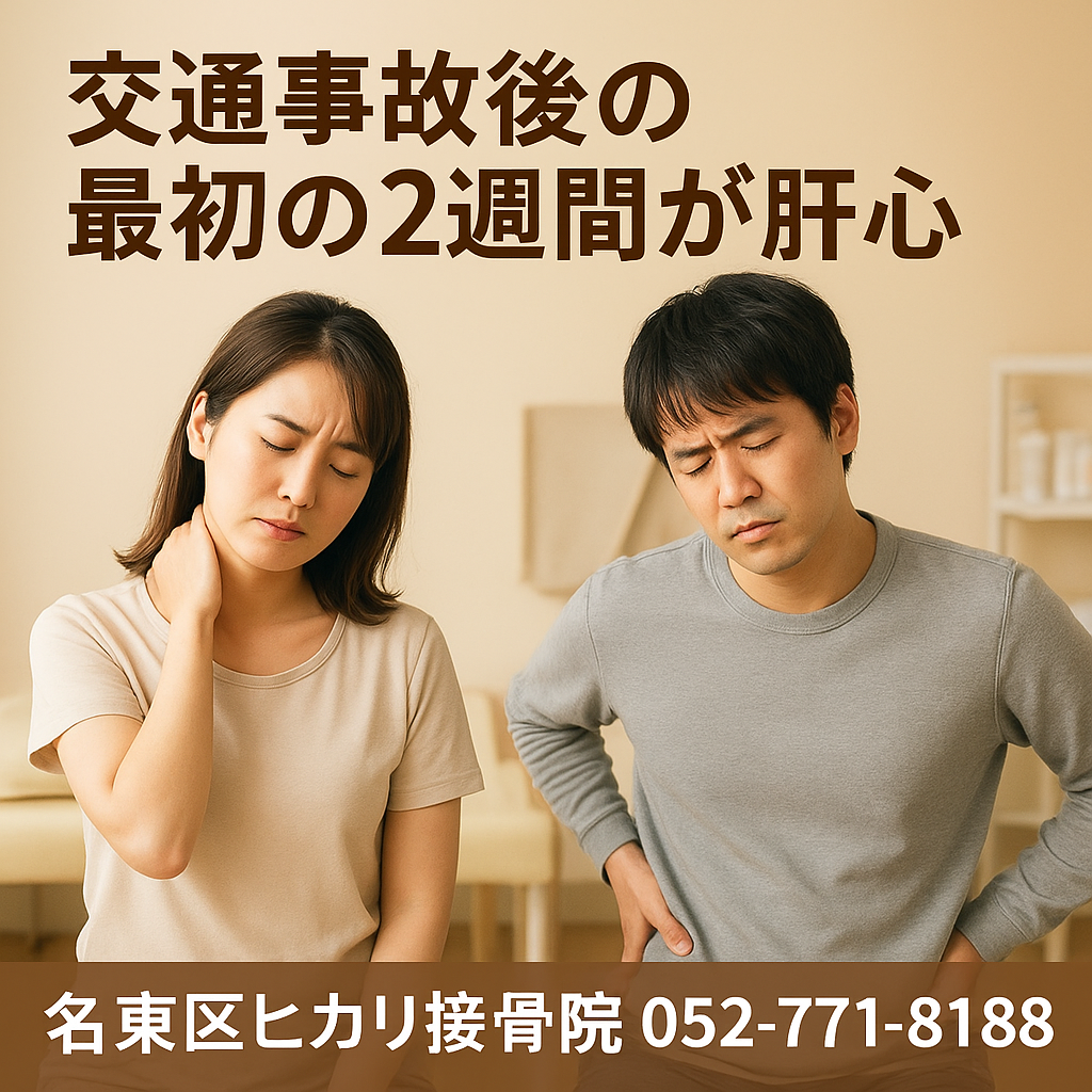 名古屋市名東区・上社駅近くで交通事故施術ならヒカリ接骨院へ。交通事故によるむち打ち・首・腰の痛みを専門的に施術。保険施術・自費施術、インソール・フットマッサージも提供。日曜も営業中