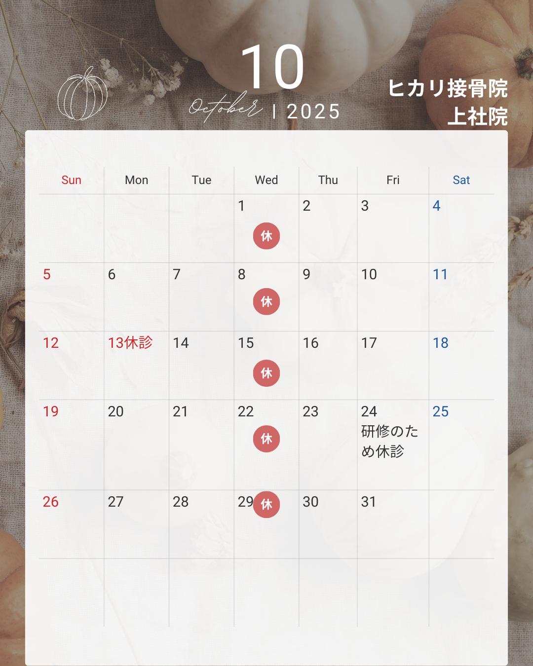 【土曜】9:15~13:00(午後は自費施術・予約制)